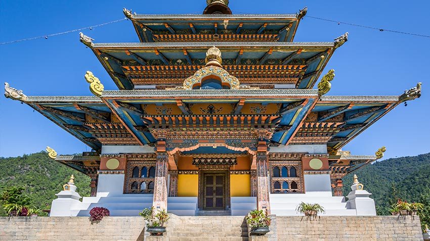 A stunning four-story pagoda-style temple built by the Queen Mother for world peace. It requires a 45-minute hike through rice terraces, but the view from the top is perhaps the best panoramic view of the Punakha valley.